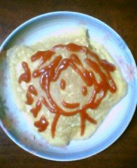 昨日の晩ご飯がォムライスだったので、ケチャップで落書きしましたvv